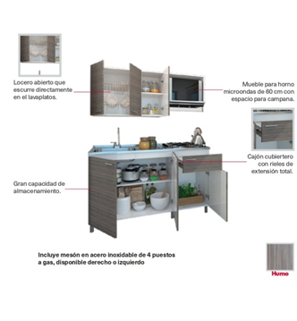 Tipo de Mesón | Mesón en acero inoxidable de 1.50m x 52 cm con 4 quemadores a gas con encendido |