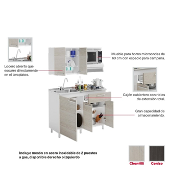 Dimensiones mueble inferior | Largo: 1.19m, Profundo: 50.5cm, Alto: 88.7cm |